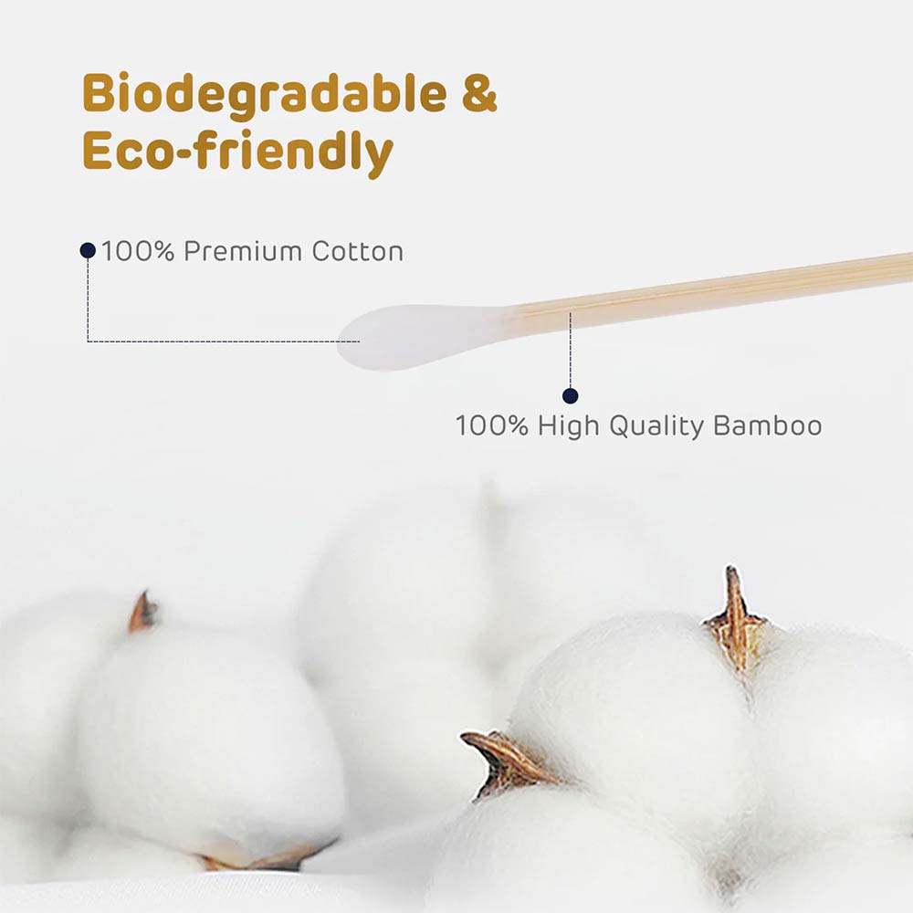 Baby Cotton Swabs: Soft, natural cotton tips and durable, eco-friendly bamboo sticks, uniquely designed with double calabash-shaped tips for maximum safety and comfort.