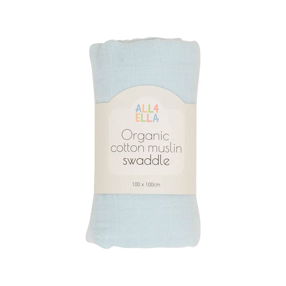 All4Ella Organic Cotton Muslin Swaddle (0m+) Blue