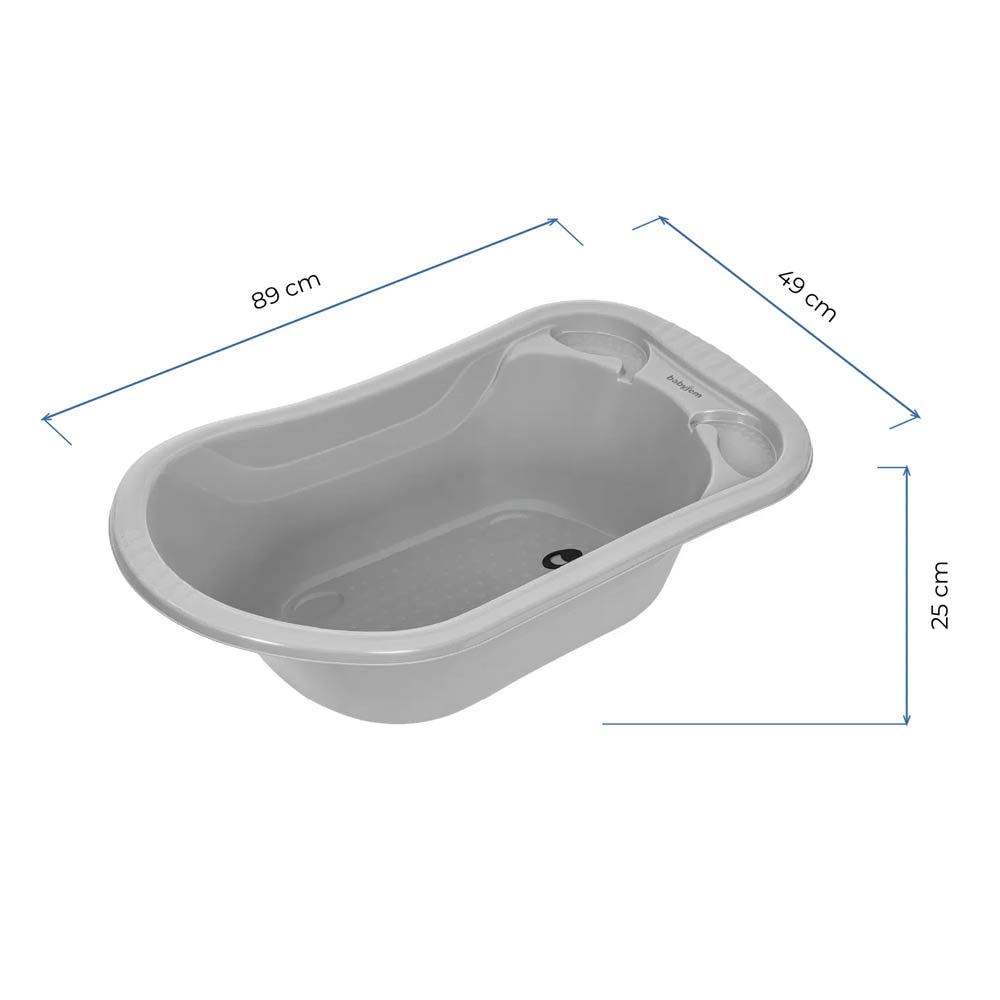 بيبي جيم حوض استحمام كبير للرضع مع سدادة تصريف – رمادي ناعم