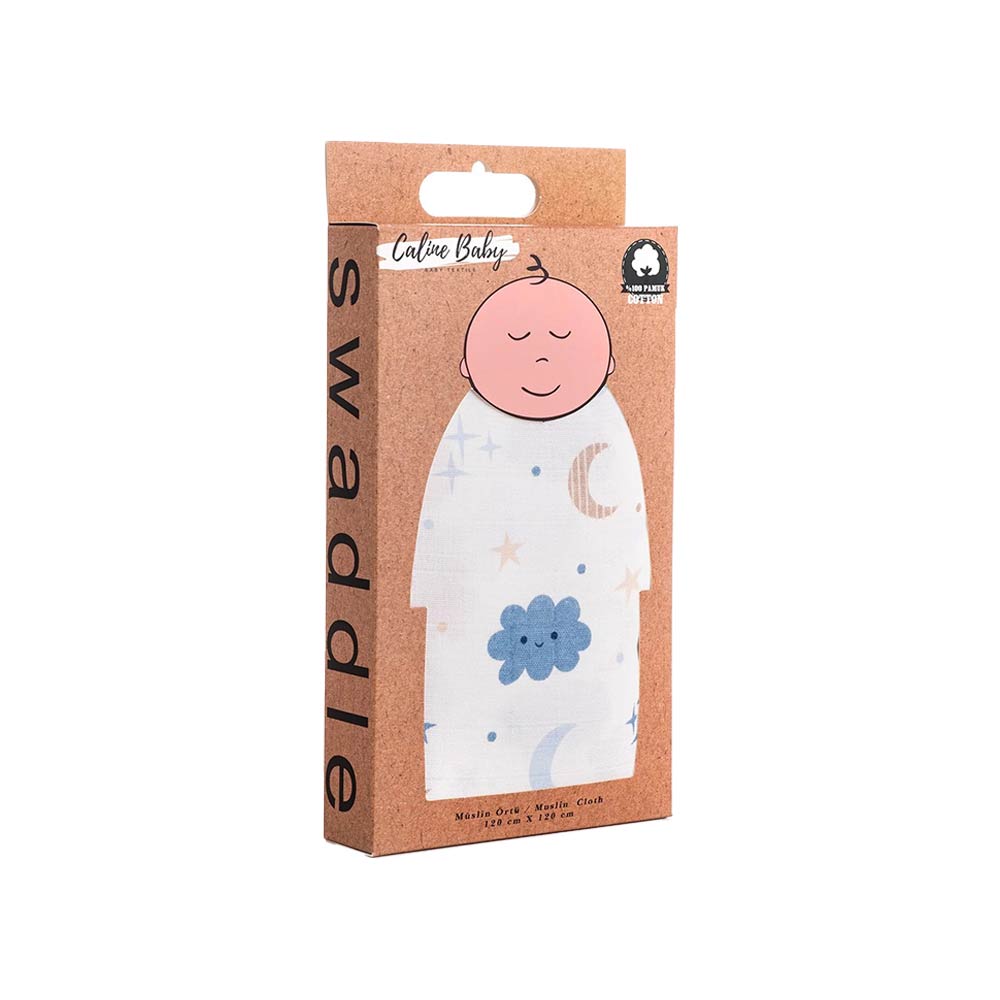 Caline Baby Cotton Muslin Swaddle – Cloud, Blue