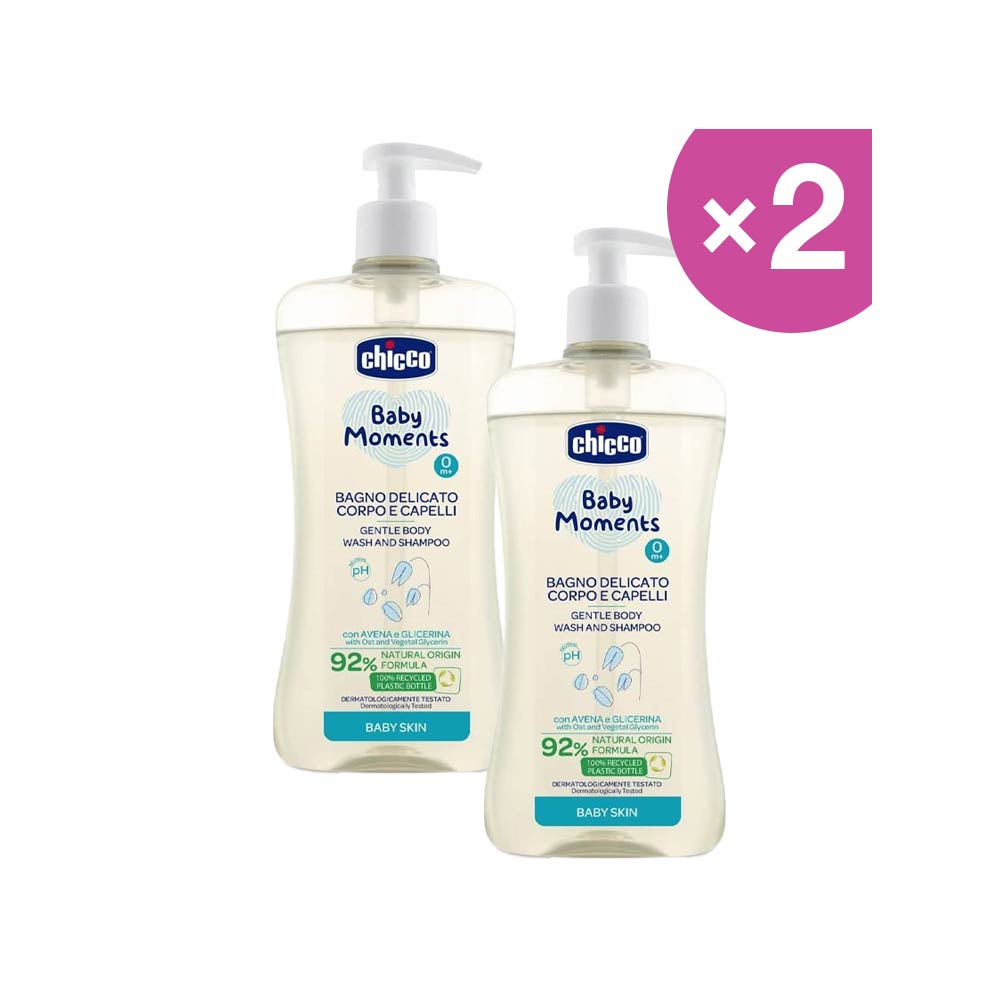 Chicco Baby Moments Gentle Body Wash & Shampoo 500ml | Pack of 2