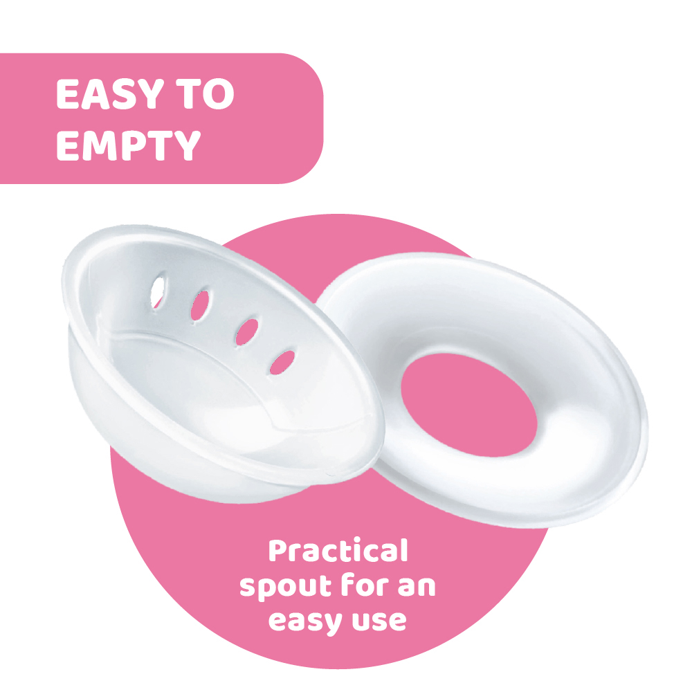 - Anatomical membrane collects milk leaks and includes a special spout for easy pouring.