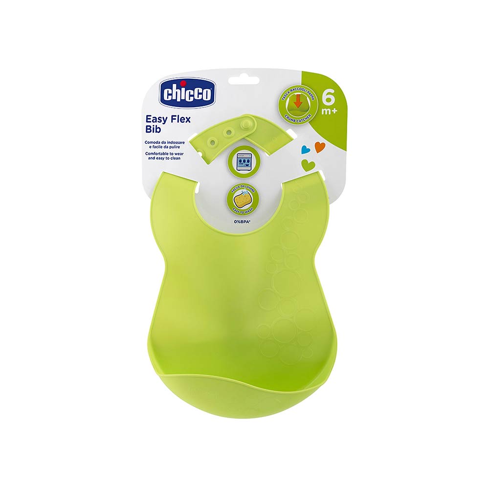 Easy Flex Bib: Super soft plastic that follows your baby’s movements, features a food-catching pocket to prevent stains and is easy to clean, even in the dishwasher.