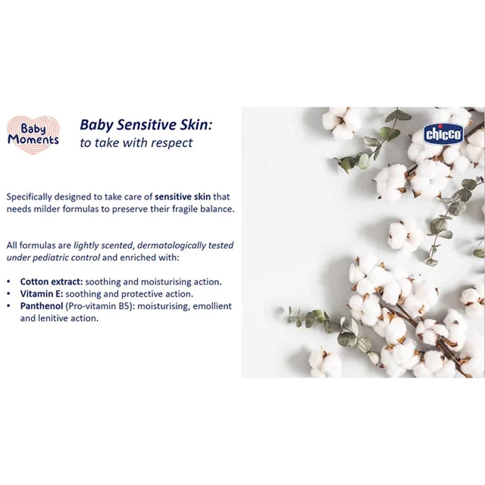 Shampoo & Shower: A gentle, no-tears micellar bath with 94% natural ingredients. Enriched with cotton oil and Vitamin E, it moisturizes sensitive skin.