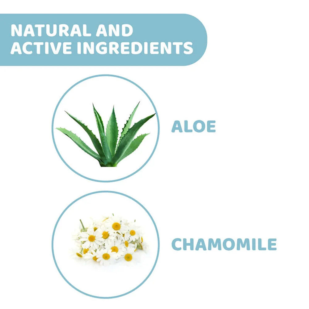 - Contains aloe and chamomile
