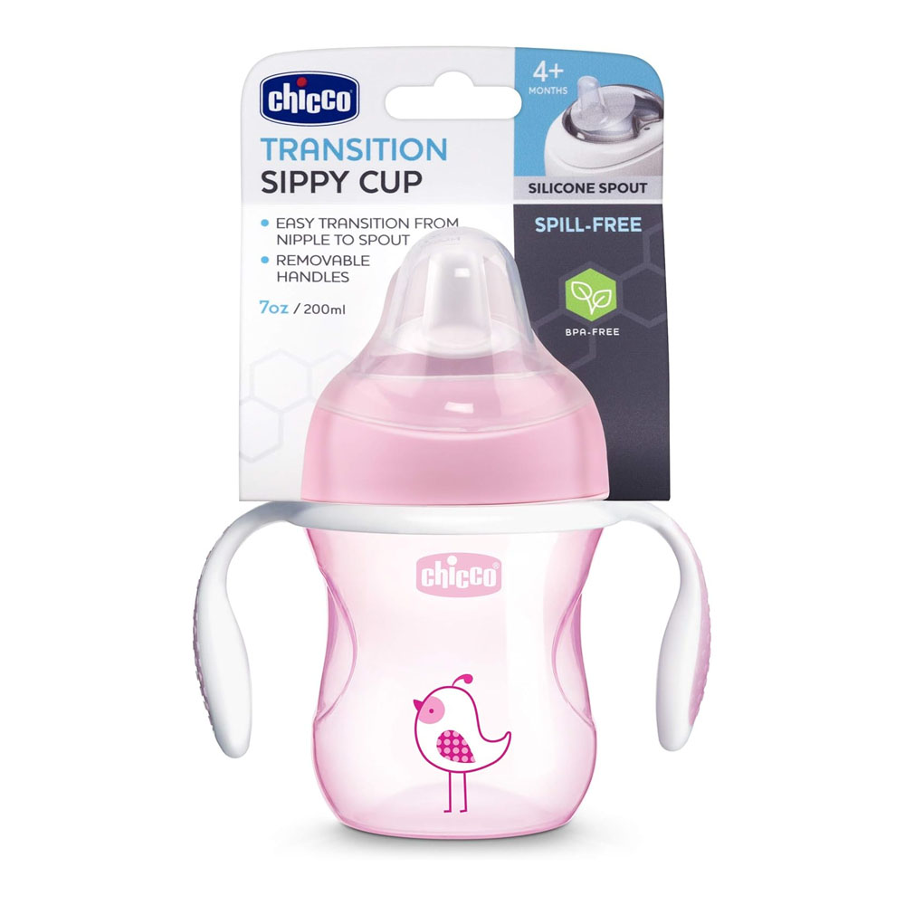 Transition Cup: Designed for an easy transition with a non-slip silicone spout and removable handles. It features a No Spill function, is interchangeable, and is BPA-free.