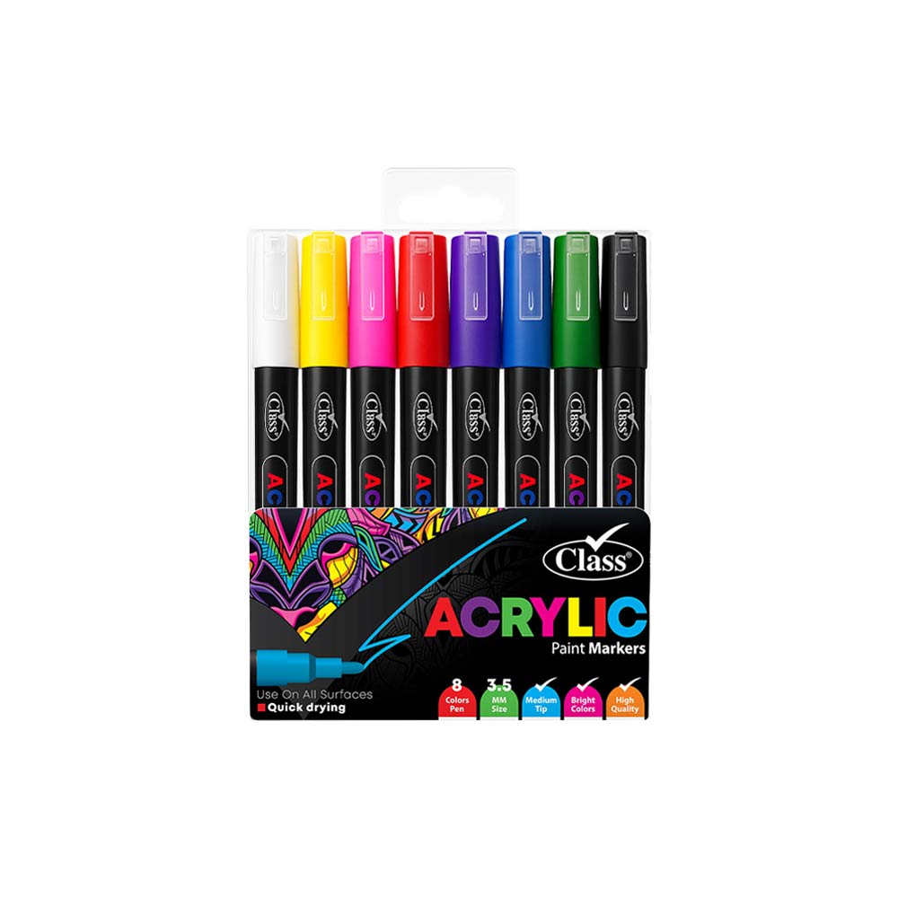 كلاس أقلام ألوان أكريليك – 8 ألوان
