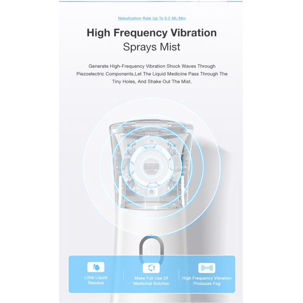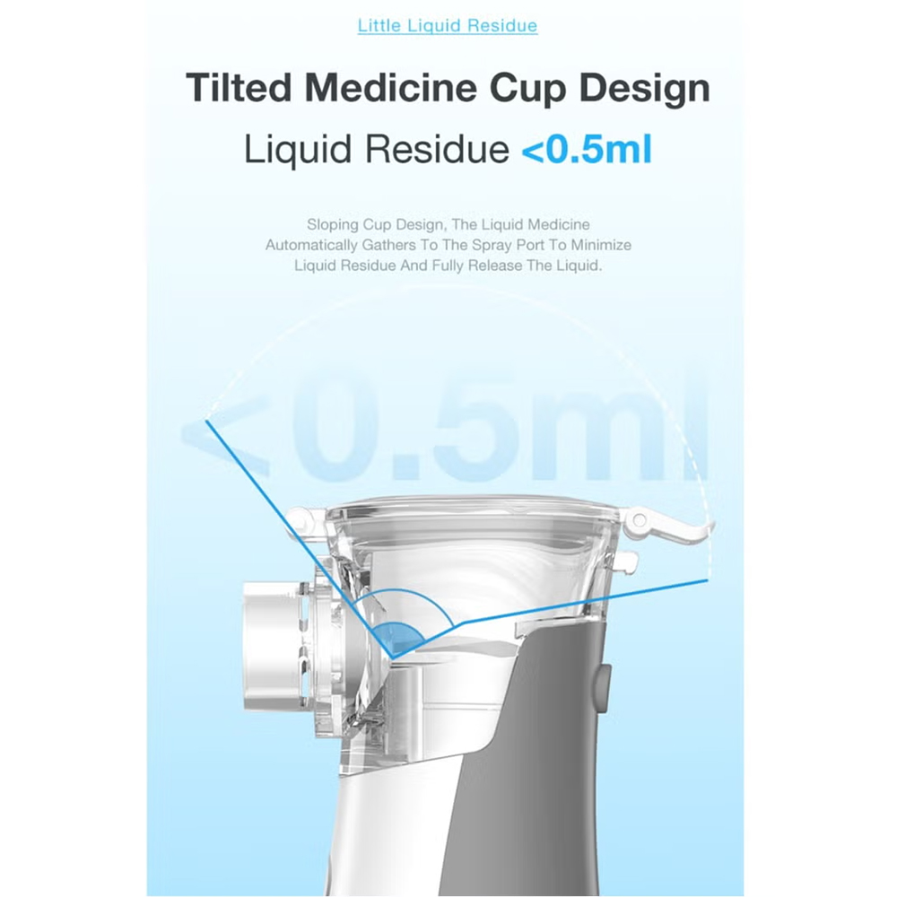 Medical mesh device with 3-level frequency conversion for all ages. Portable 110g design with 15ml cup and 4.2nm fine mist.