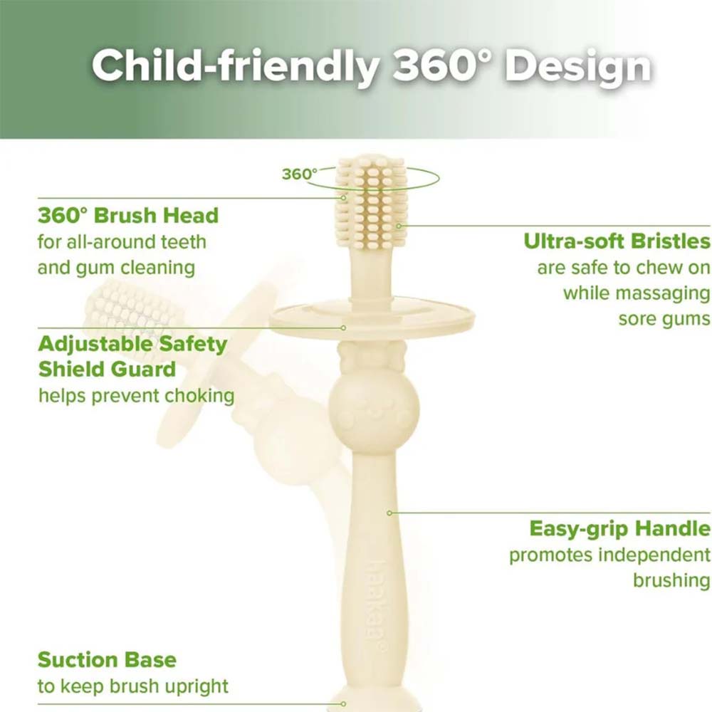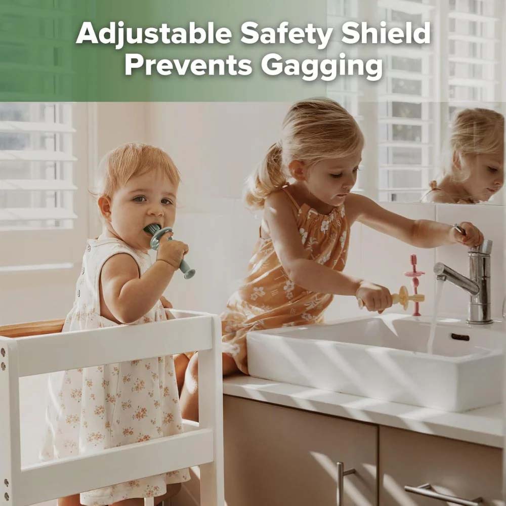 Silicone Toothbrush: Provides an effective clean, removing more plaque than conventional brushes. It’s soft, safe to chew on, and soothes tender gums.