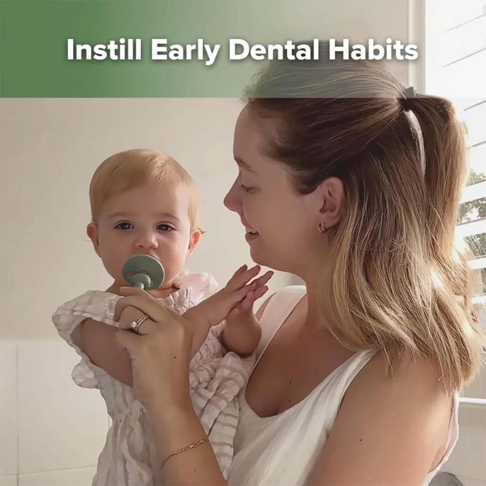Silicone Toothbrush: Provides an effective clean, removing more plaque than conventional brushes. It’s soft, safe to chew on, and soothes tender gums.