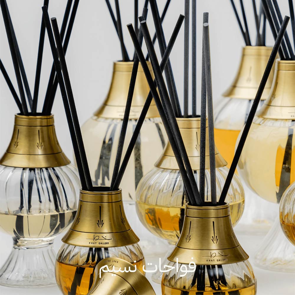 عطر أعواد: بزيوت عطرية، مستوحى من المرش النحاسي الكويتي التقليدي، يربط التراث العربي بالتصميم الحديث.