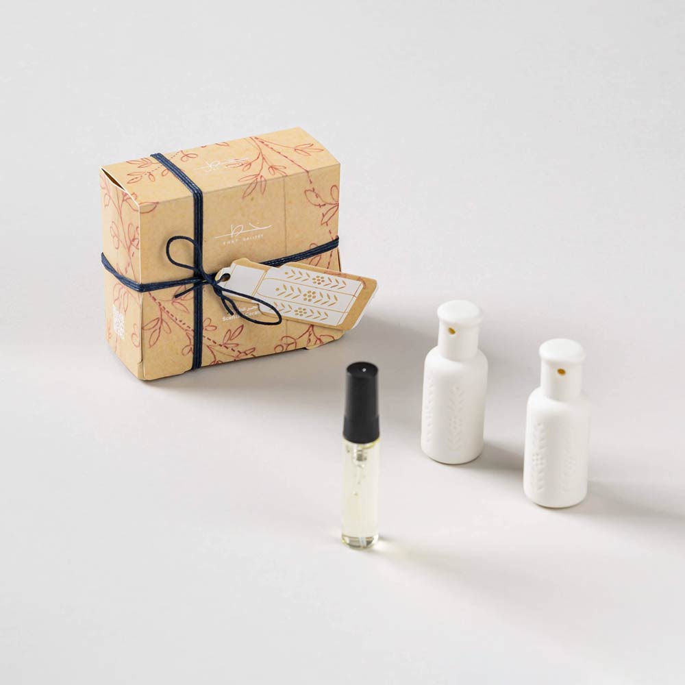 معطرات سيراميك معطّرة: قطع سيراميك بيضاء مصنوعة يدويًا على شكل المرش التقليدي، مصممة لنشر عطر لطيف يدوم طويلاً في الخزانات أو السيارات.