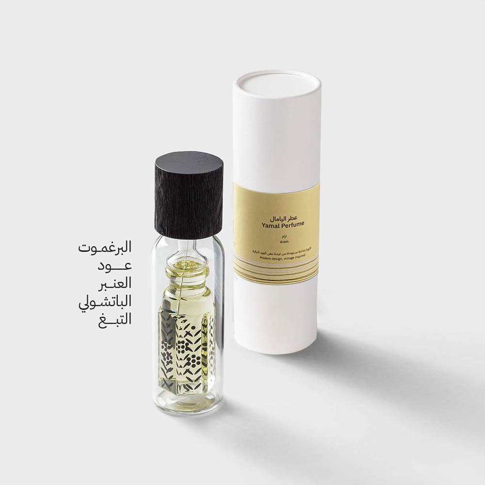 عطر: عطر مصمم بأسلوب عصري مستوحى من تولة دهن العود في الثقافة العربية، يتميز بنفحات منعشة ومهدئة.