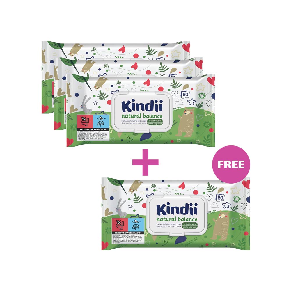 Kindii Baby Wet Wipes Natural Balance – 60 Wipes | 3+1 FREE
