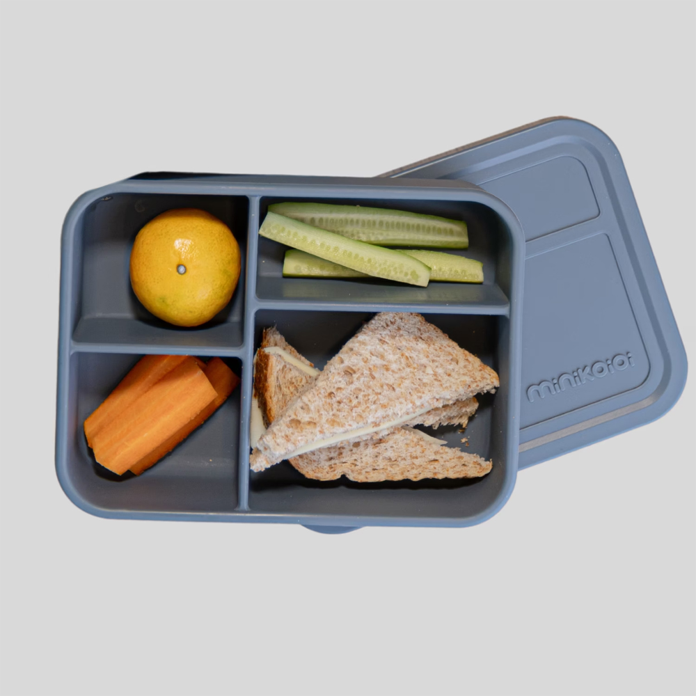 Bento Lunch Box: A 100% food-grade silicone bento box. Features 4-compartments for variety/BLW and is safe for the oven, freezer, and dishwasher.