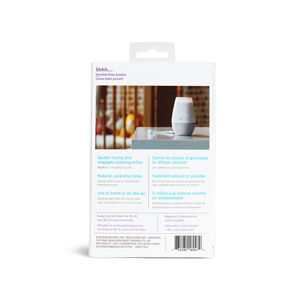 - Features three specific sounds to calm and soothe: shushing, heartbeat, and white noise.