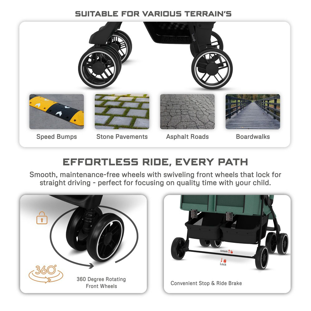 Neobreez DUADX Twin Stroller (0-3Yrs) Max 30kg – Green