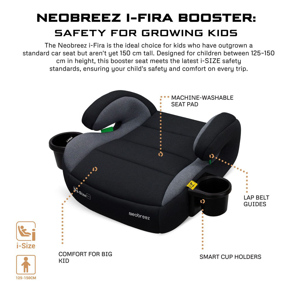 Neobreez i-FIRA i-Size Car Seat Booster (6-12Yrs) Max 36kg – Black/Dark Gray