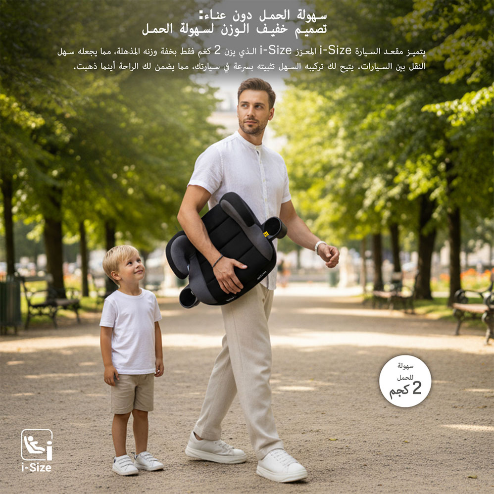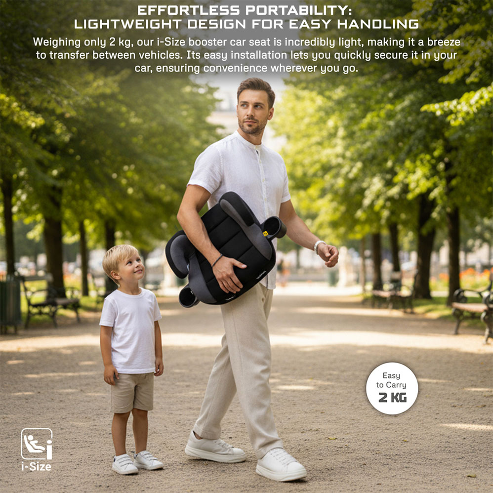 Car Seat Booster: An exceptionally lightweight and compact booster seat designed for ultimate safety and comfort for older children, meeting the latest i-Size standards.