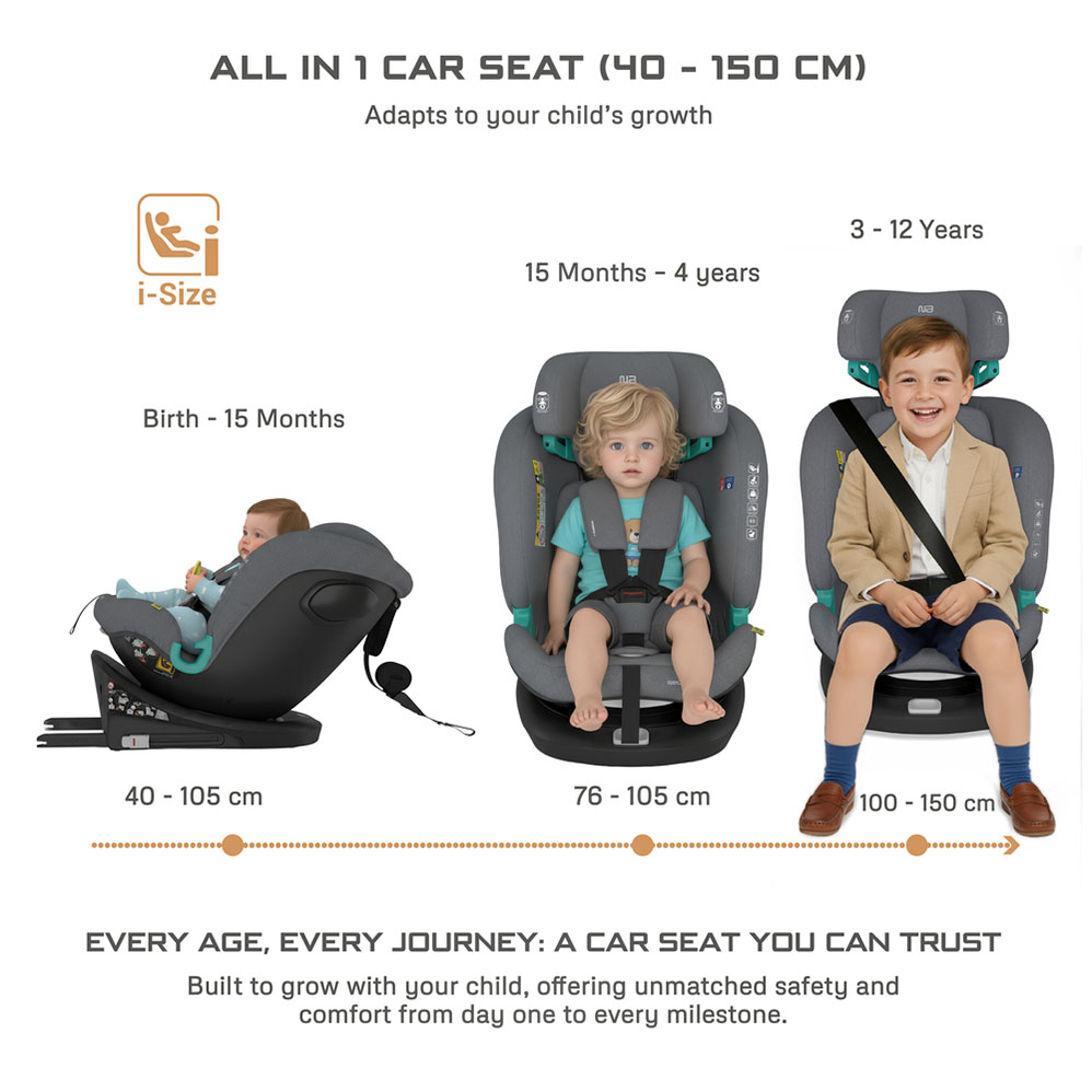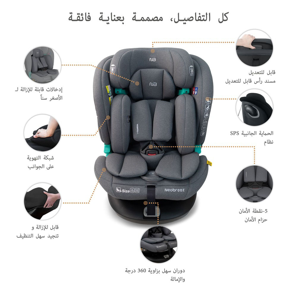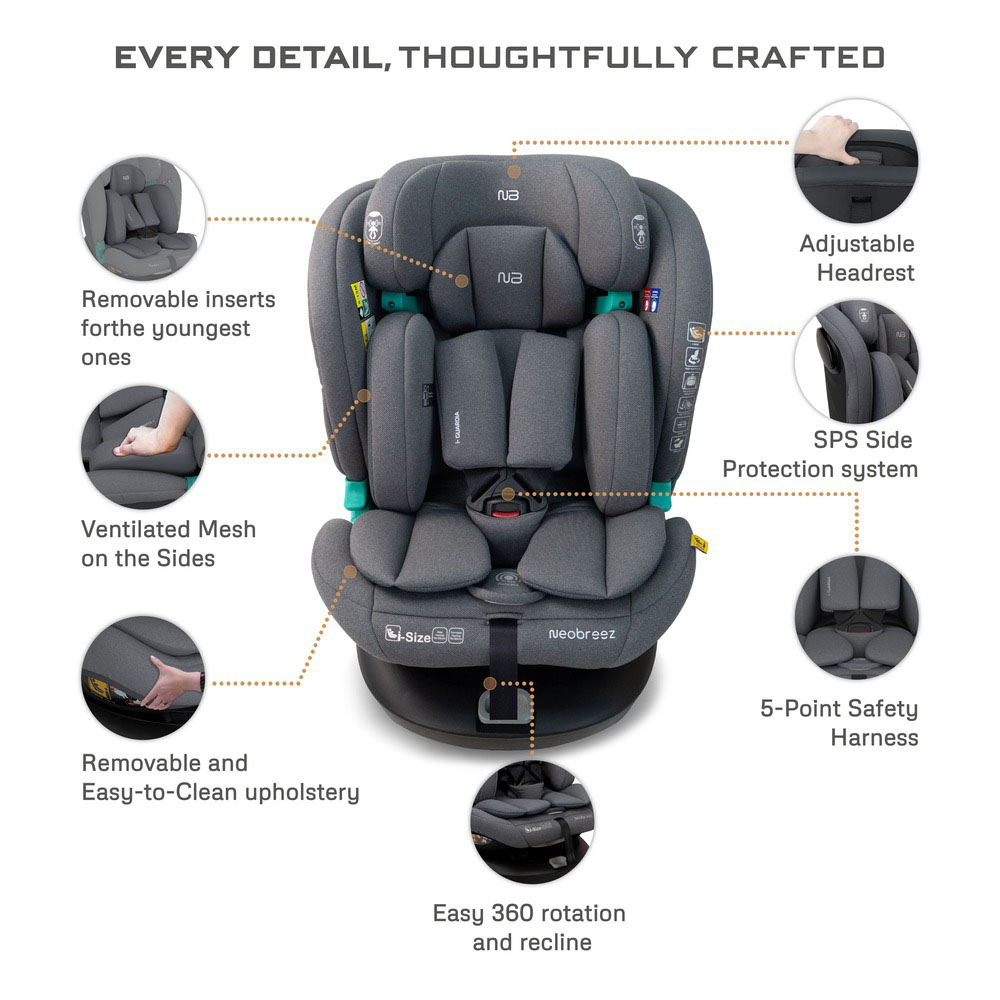 Neobreez i-GAURDIA 360° i-Size Car Seat (0-12Yrs) Max 36kg – Gray