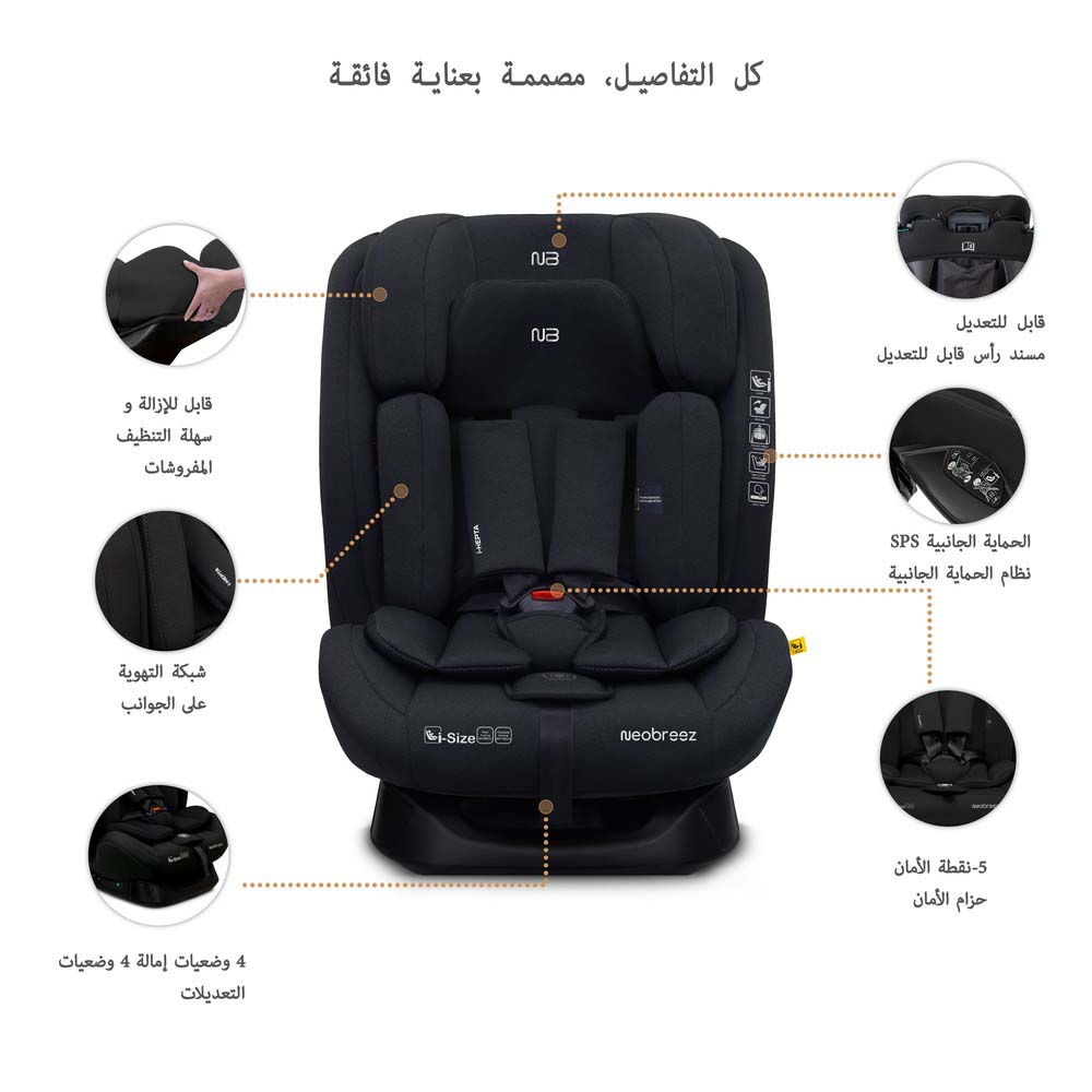 Neobreez i-HEPTA i-Size Car Seat (0-12Yrs) Max 36kg – Black