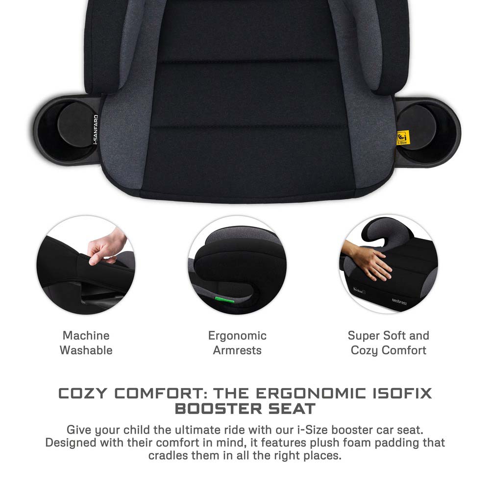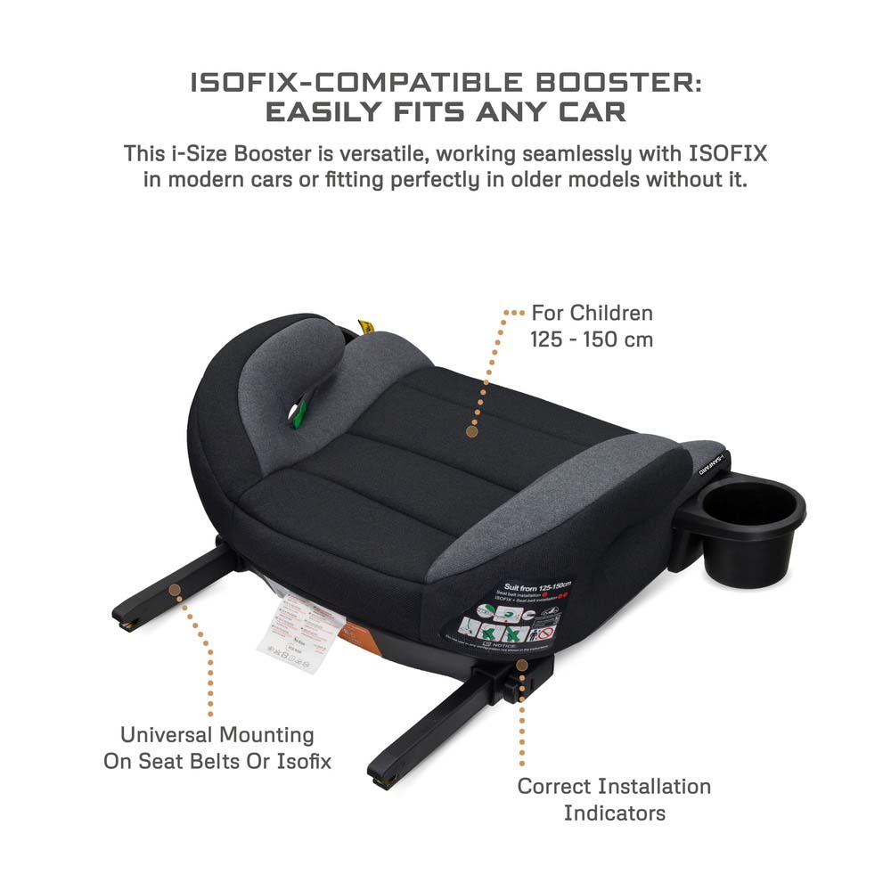 نيوبريز أي-سانفارو مقعد سيارة بوستر أي-سايز (6-12 سنة) حتى 36 كجم – أسود/رمادي داكن