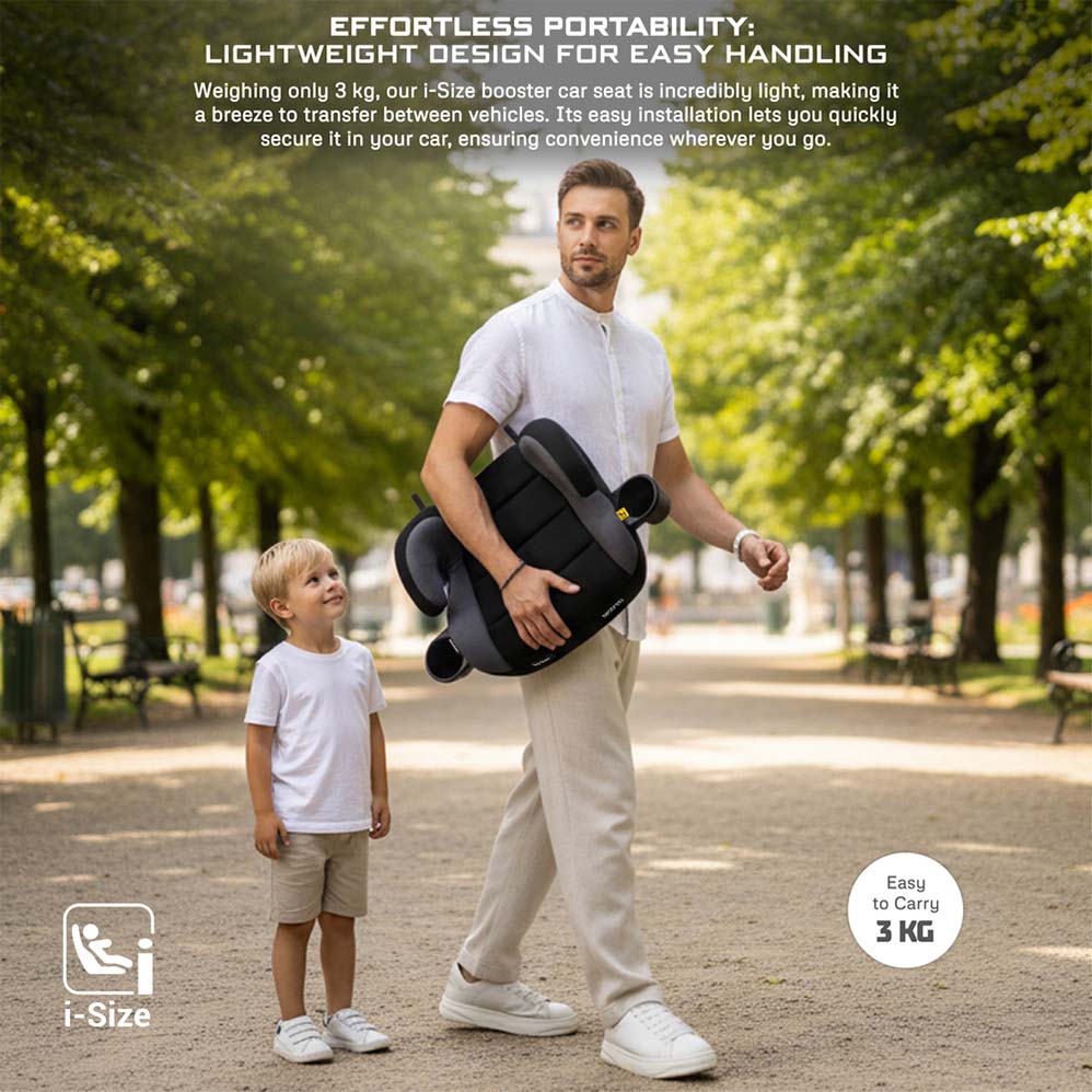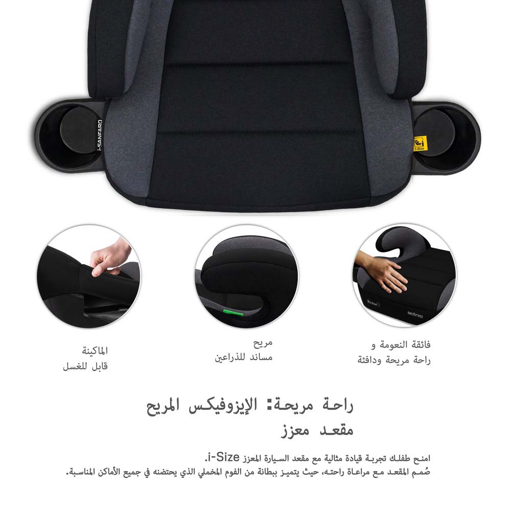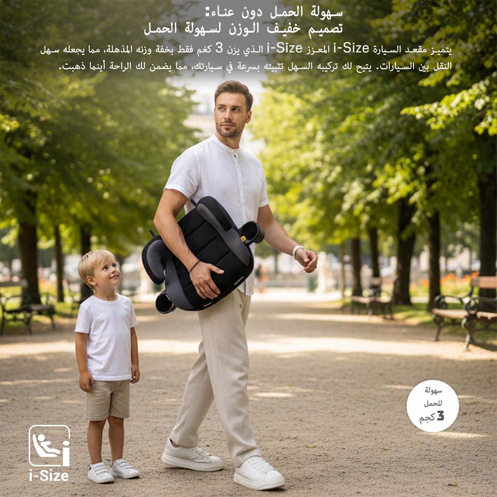 مقعد سيارة بوستر: مقعد بوستر نحيف ومحمول يلبي أحدث معايير السلامة i-Size، مصمم لتوفير أقصى درجات الحماية والراحة في كل رحلة.