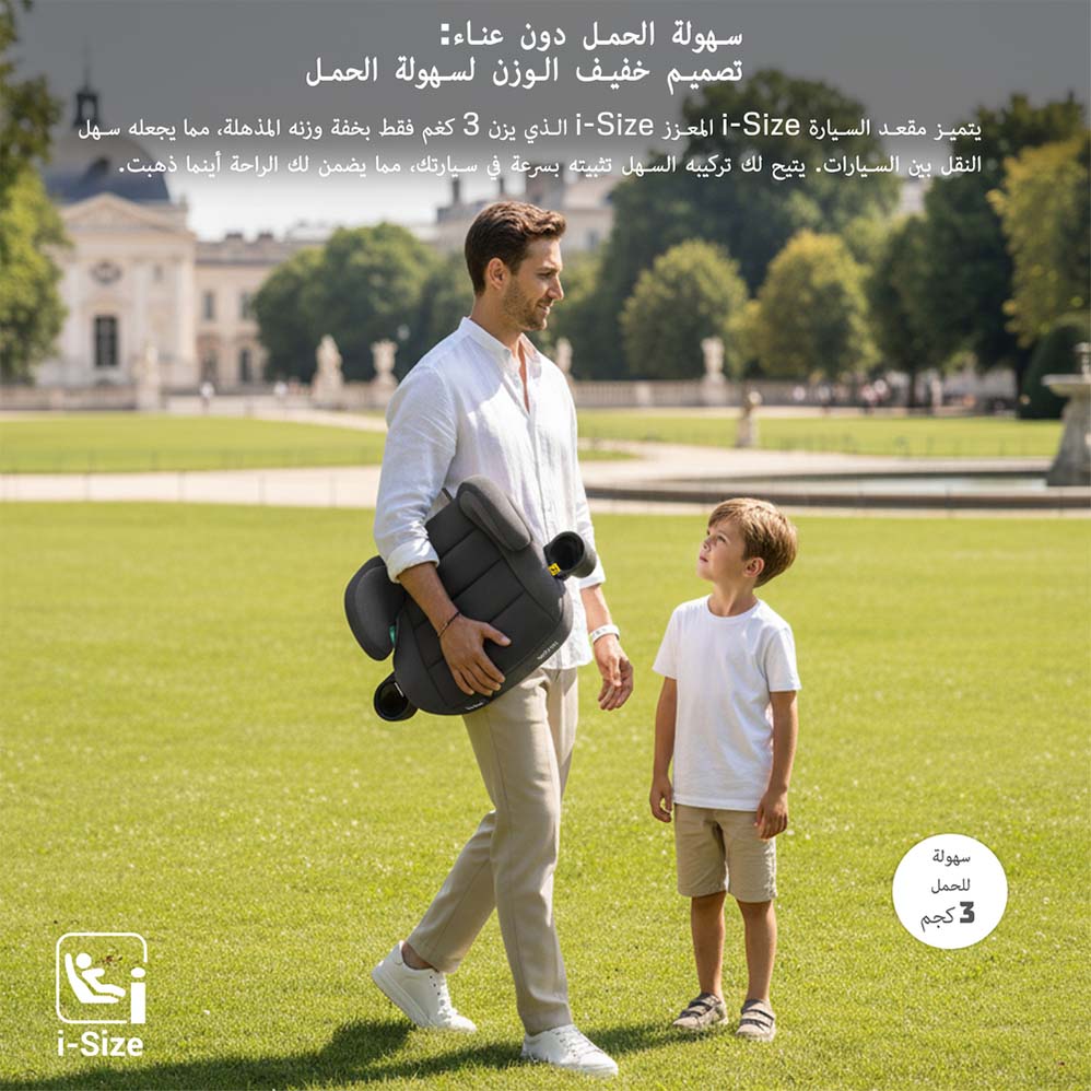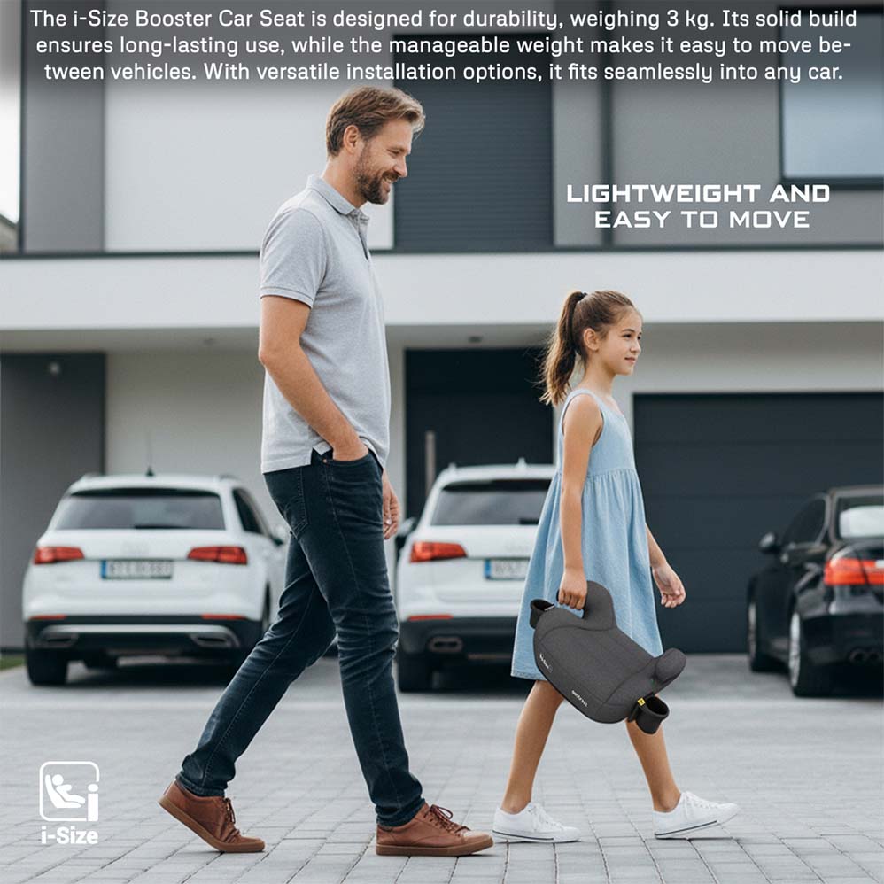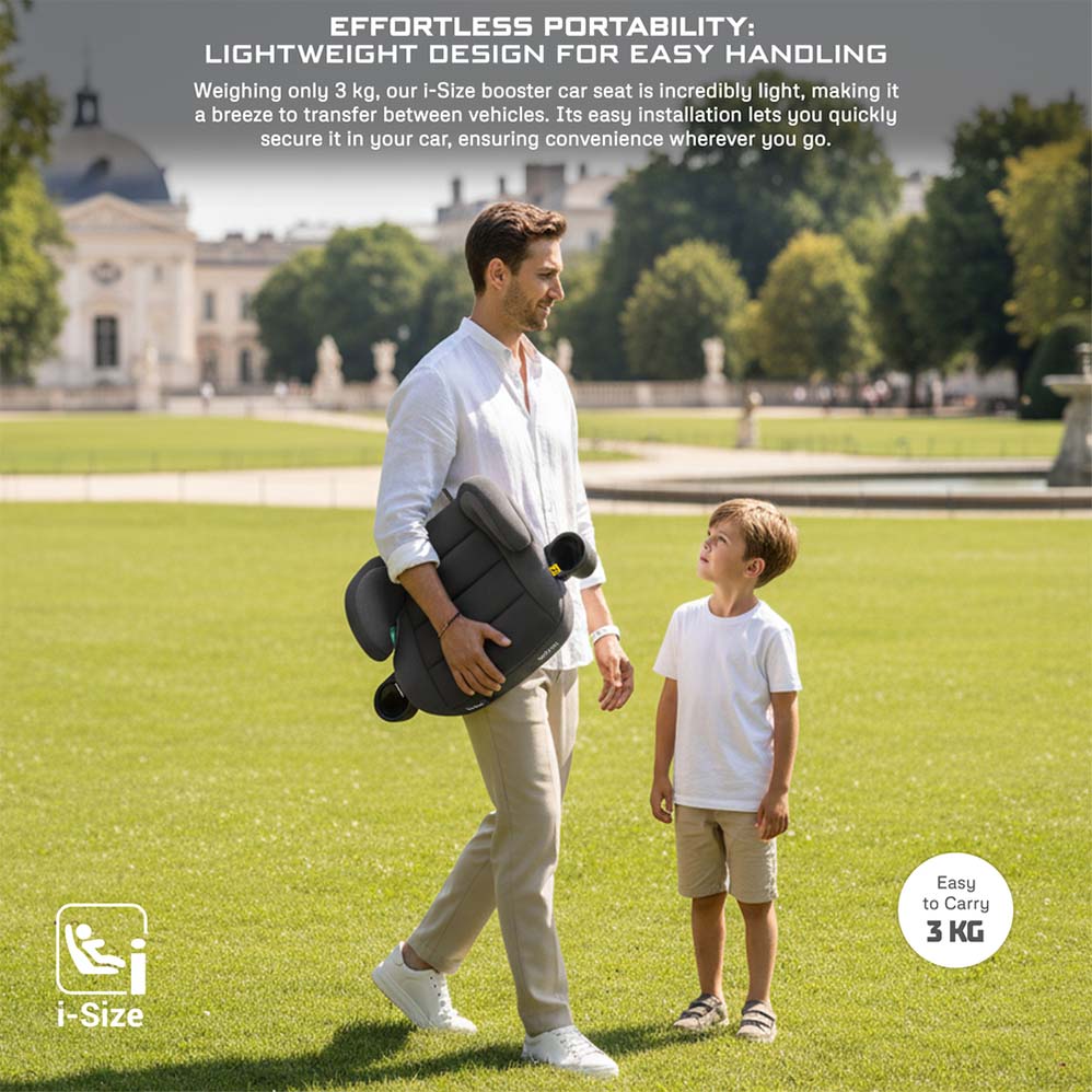 Car Seat Booster: This slim and portable booster seat meets the latest i-Size safety standards, designed for ultimate protection and comfort on every drive.