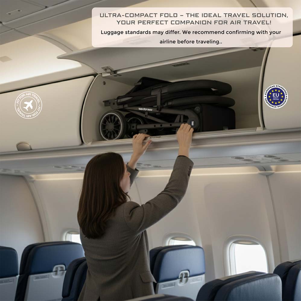 Compact Stroller: Lightweight, cabin-approved travel stroller, featuring a stepless recline, 4-wheel suspension, UPF 50+ canopy, and premium accessories.