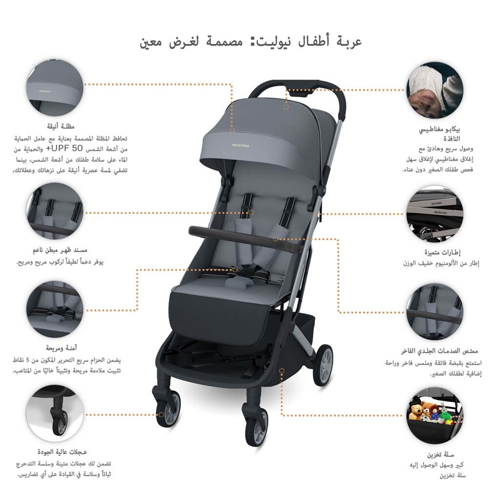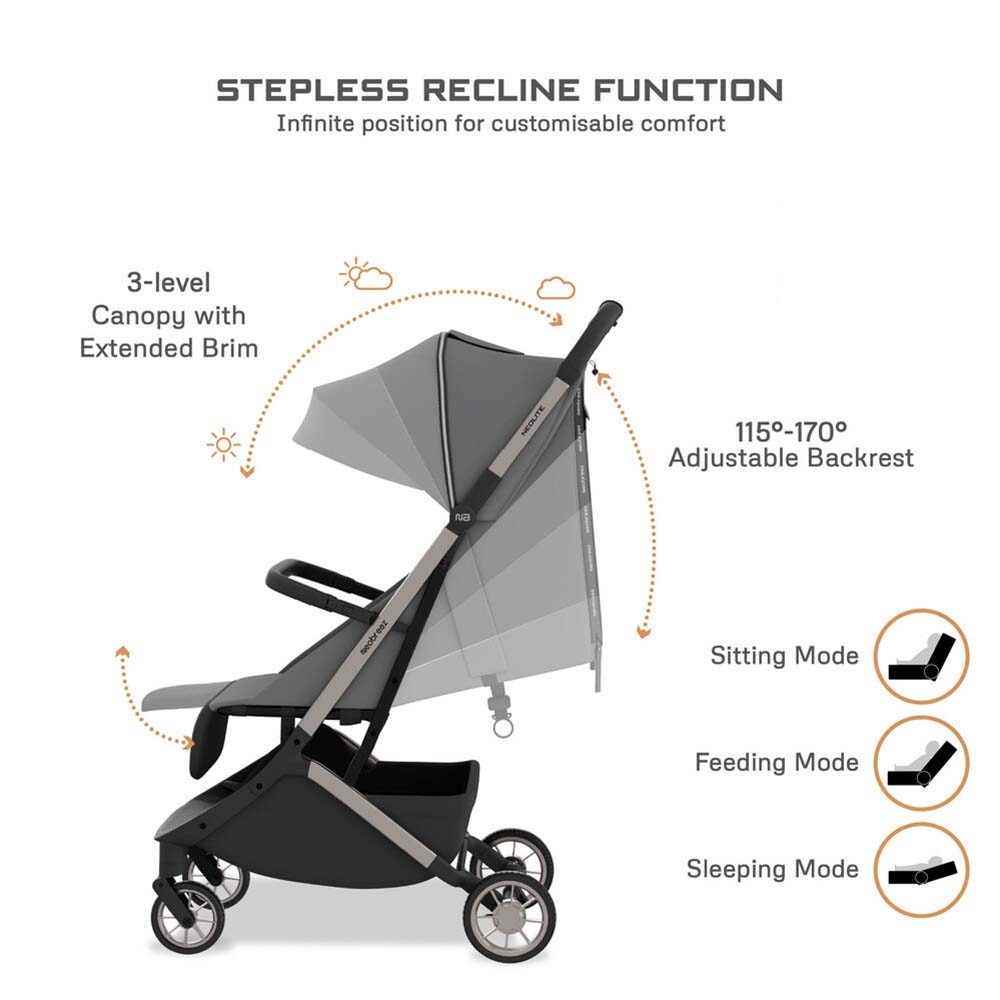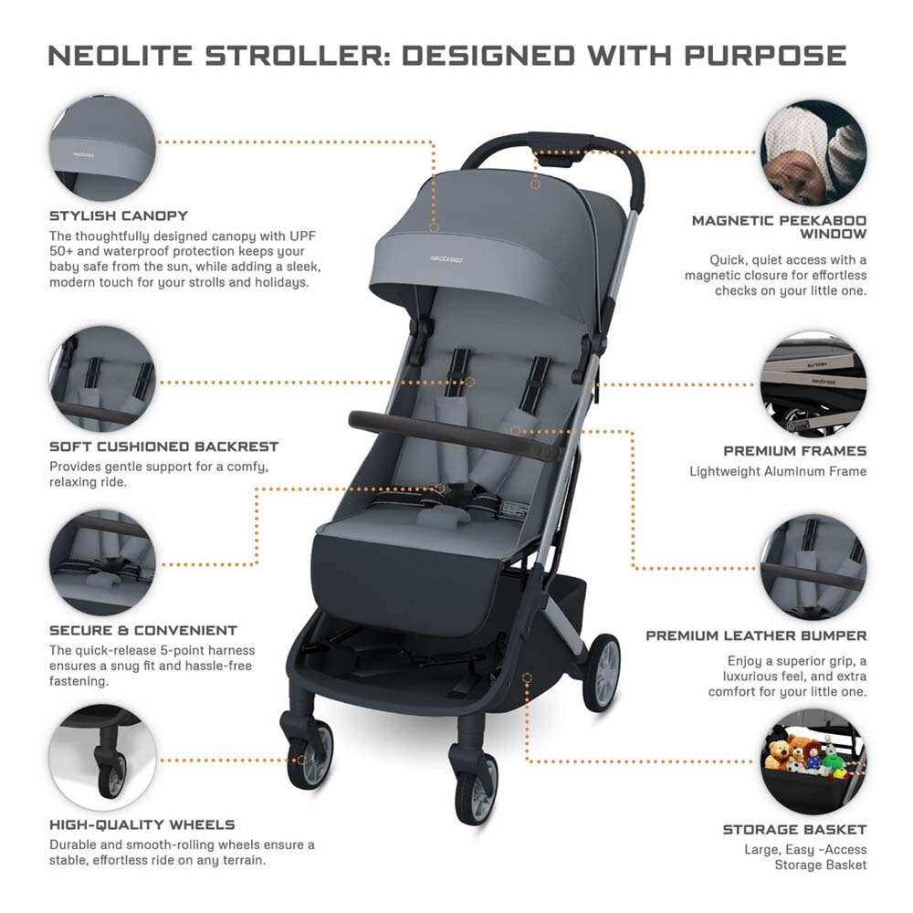 Neobreez NEOLITE Compact Stroller (0-4Yrs) Max 22kg – Dark Gray/Black
