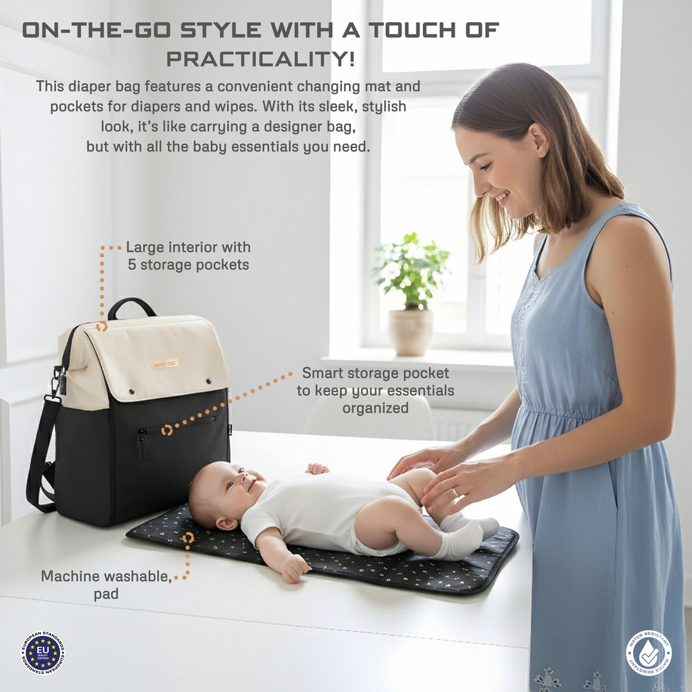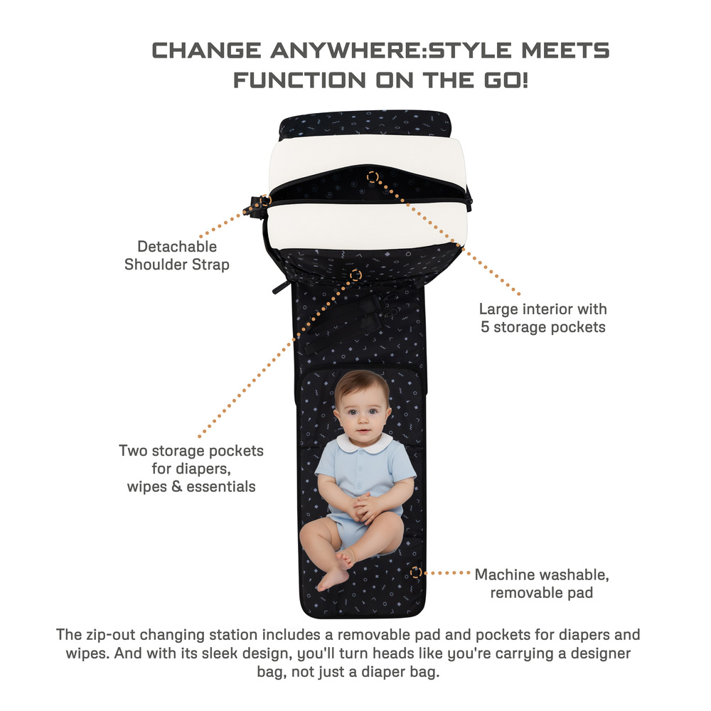 Diaper Bag: Ideal for baby showers or first visits, adorned with a sweet print, it’s designed for ultimate comfort and makes gifting easy.
