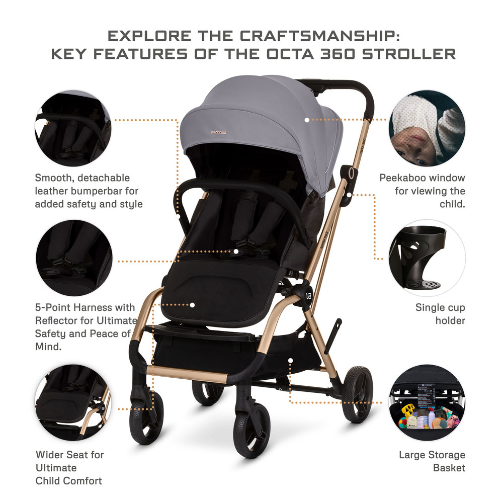 نيوبريز أوكتا 360 عربة أطفال (0-4 سنوات) حتى 22 كجم – رمادي متوسط