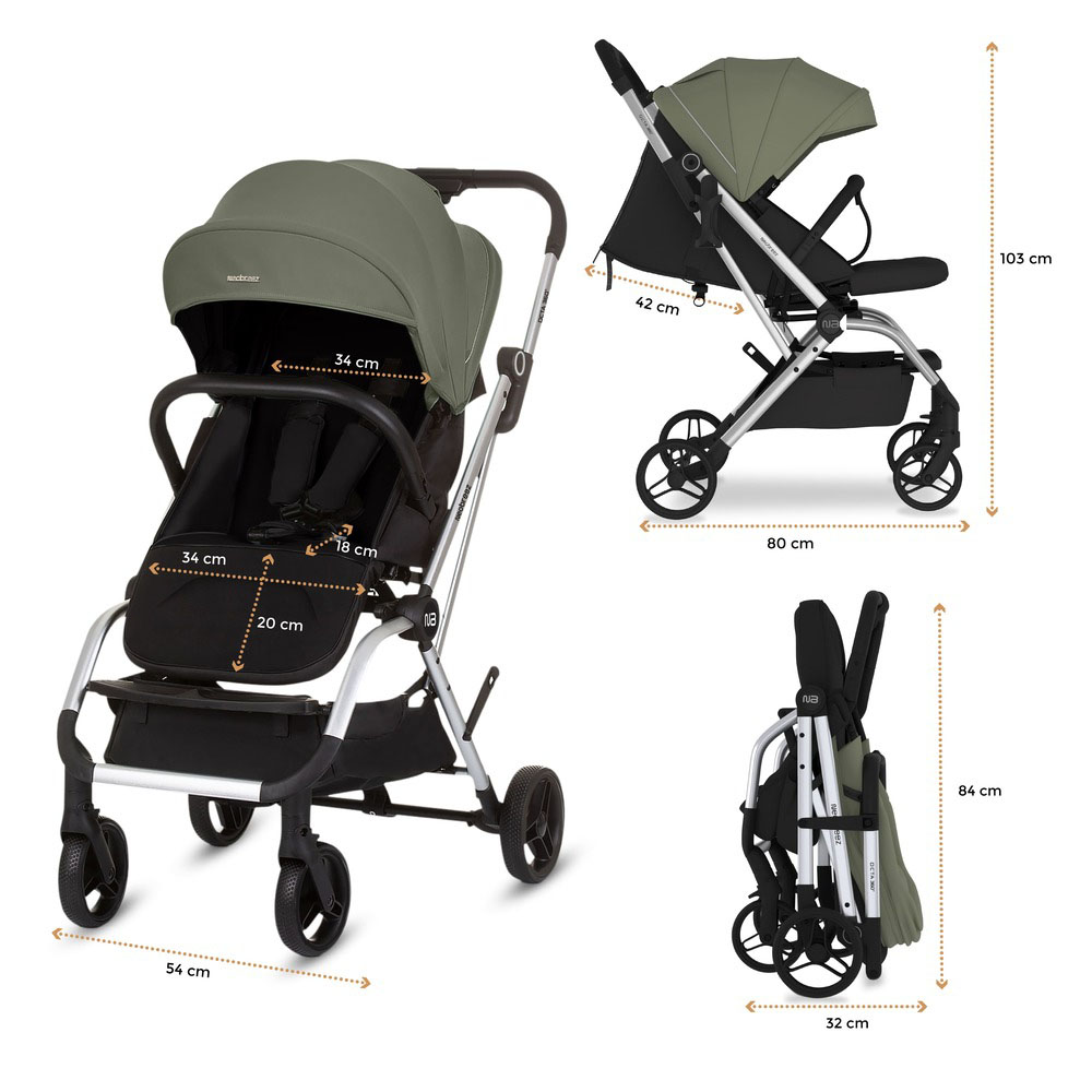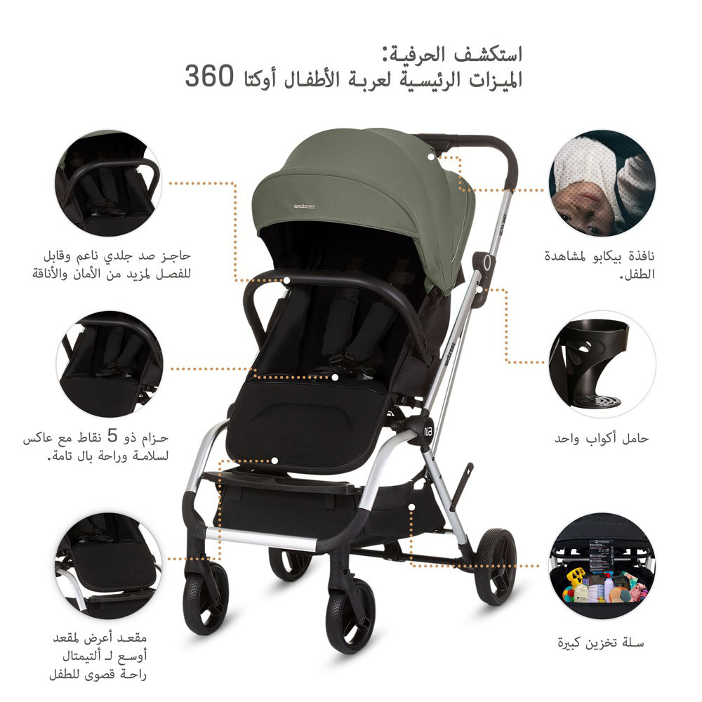 نيوبريز أوكتا 360 عربة أطفال (0-4 سنوات) حتى 22 كجم – أخضر زيتوني/أسود