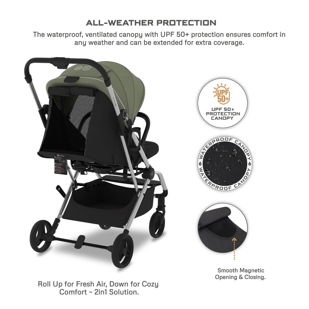 - مظلة UPF 50+: حماية ممتدة مقاومة للماء مع تهوية شبكية.