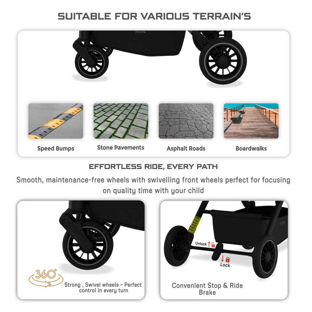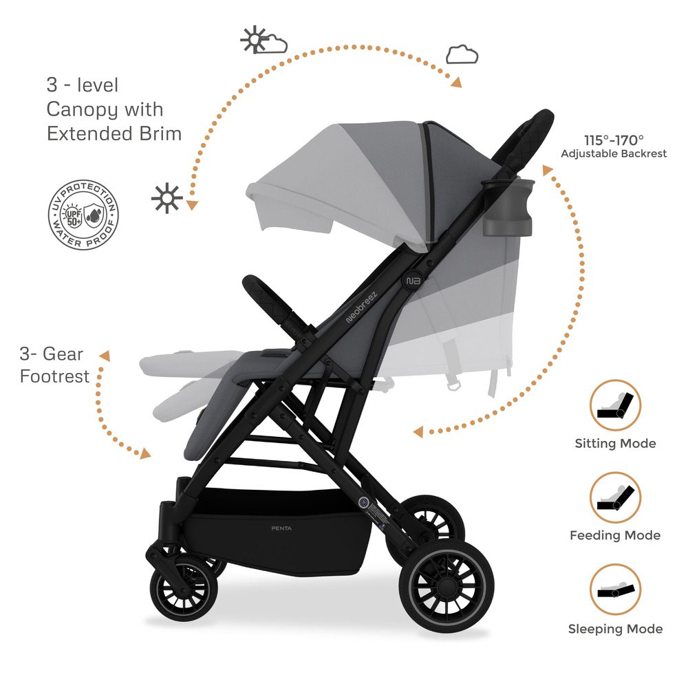 نيوبريز بينتا عربة أطفال مدمجة (0-3 سنوات) حتى 15 كجم – رمادي أسود
