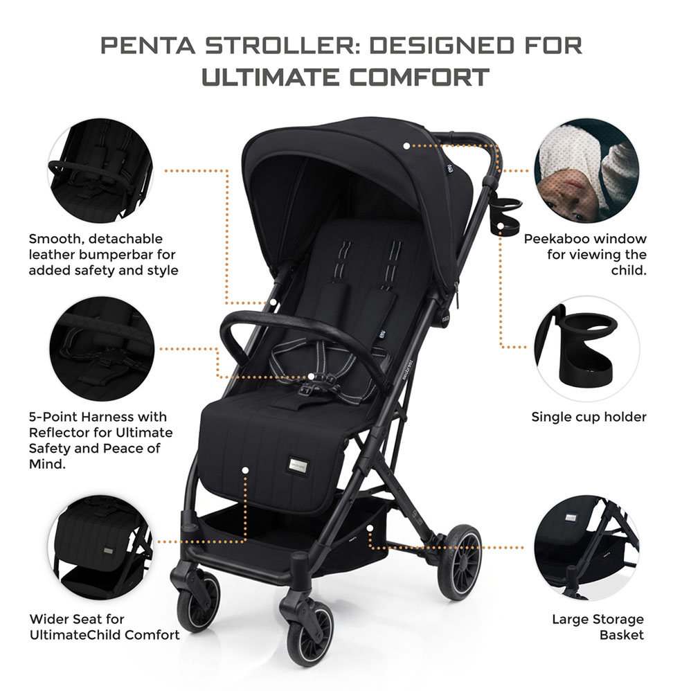 Compact Stroller: Fold the Penta with one hand using the auto-lock mechanism, then pull it effortlessly like luggage. Fits perfectly in overhead compartments for seamless travel.