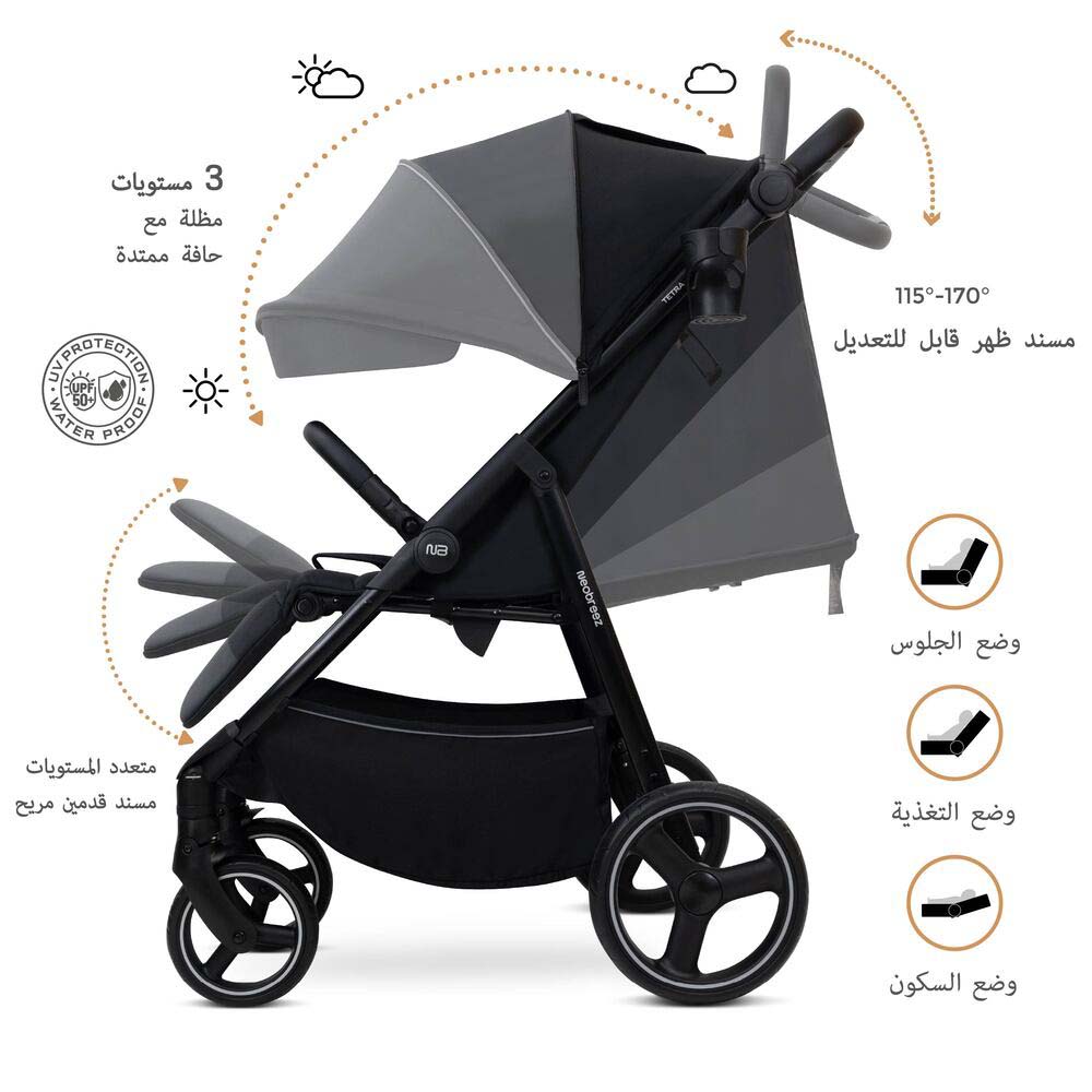 Neobreez TETRA All-Terrain Stroller (0-4Yrs) Max 22kg – Black