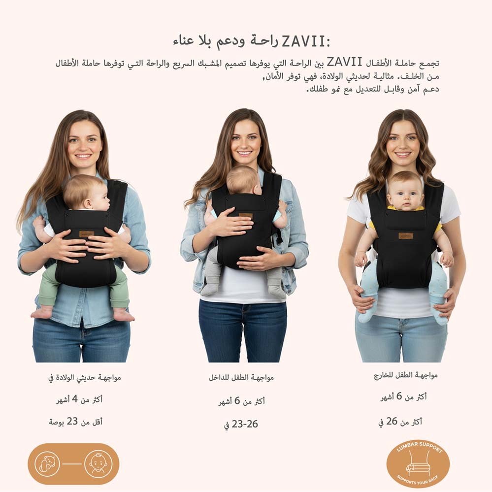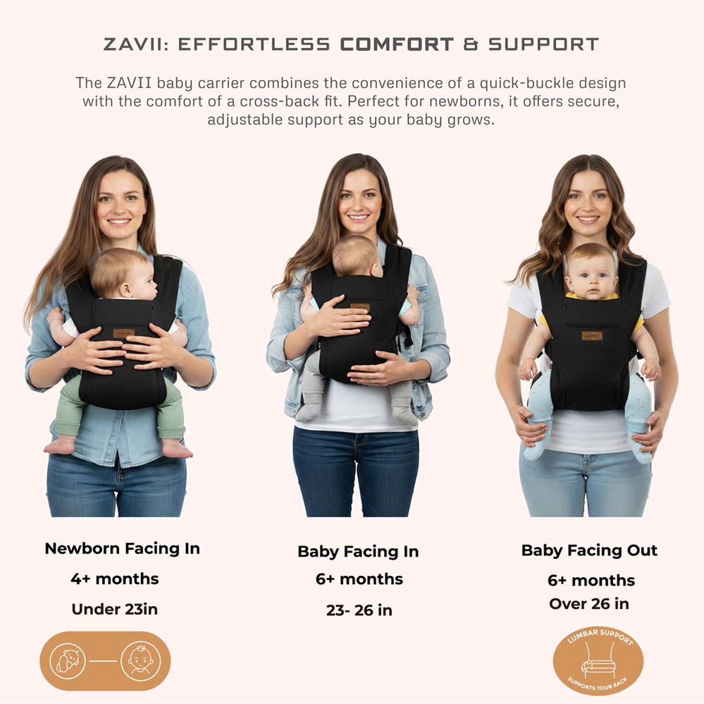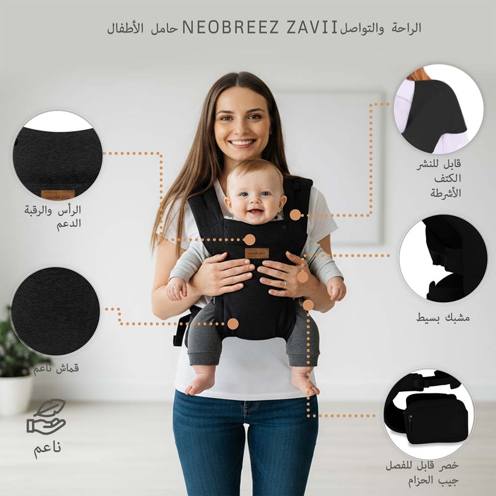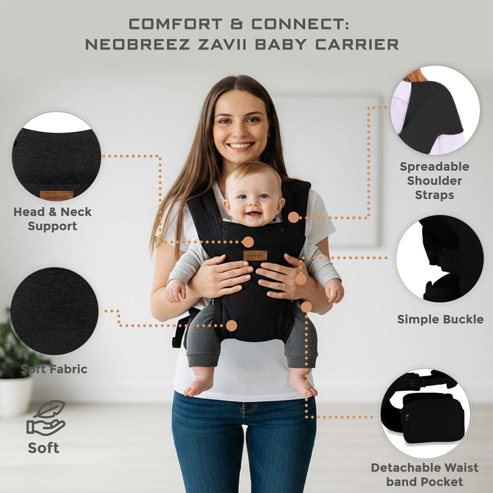 Neobreez ZAVII 2-In-1 Baby Carrier (0m+) Up to 3.5-12kg – Black