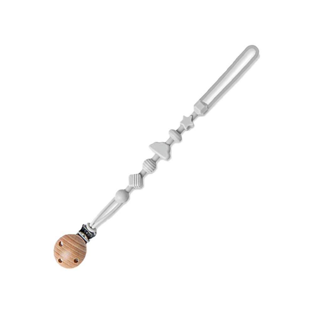 Ninoo Silicone Pacifier Clip (Wooden) Gray Blue