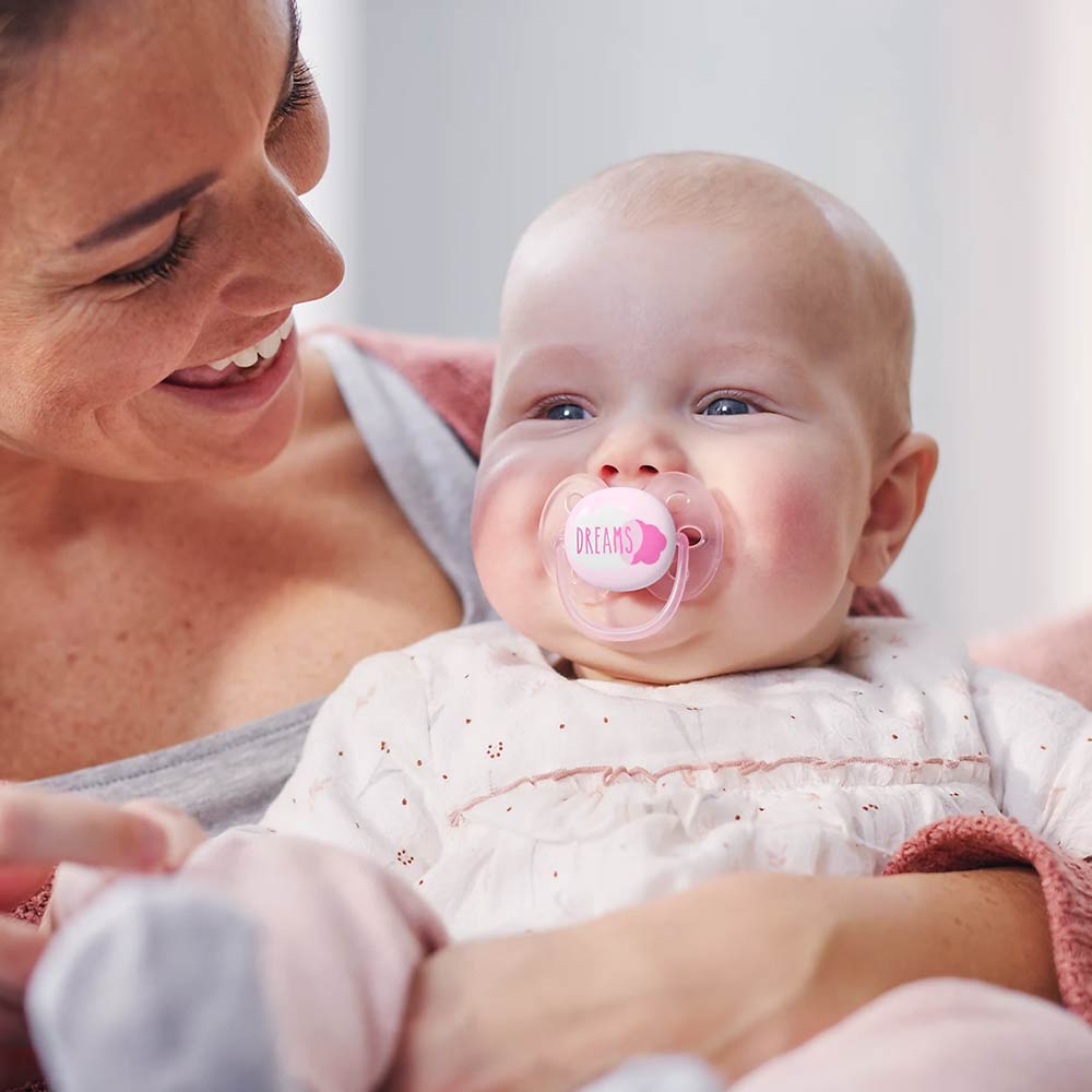 Pacifiers: Ultra-soft and flexible shield that follows the natural curves of your baby’s face, resulting in fewer skin marks and less irritation.