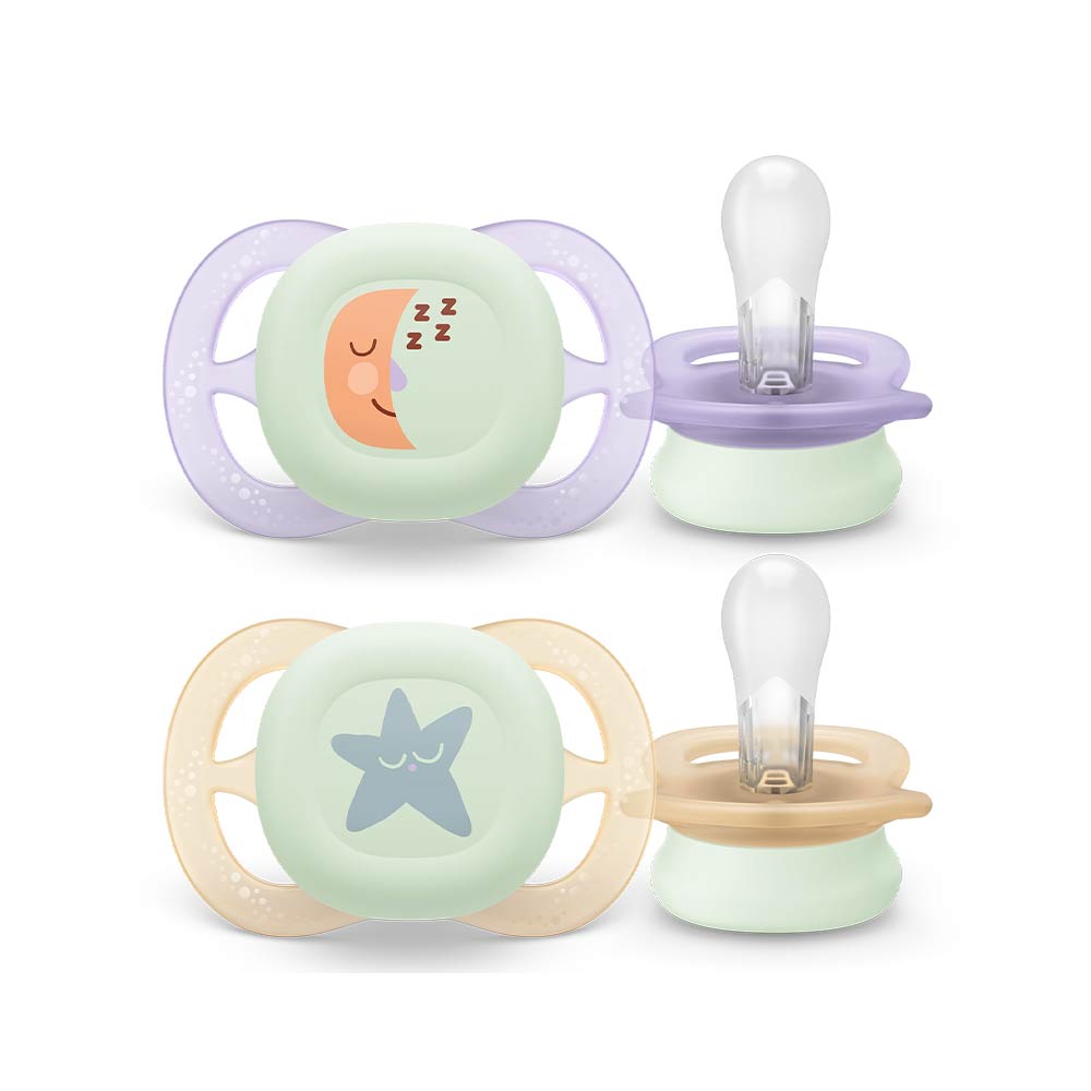 Philips Avent Ultra Start Nighttime Soothers (0-2m) for Girl, 2 Pcs