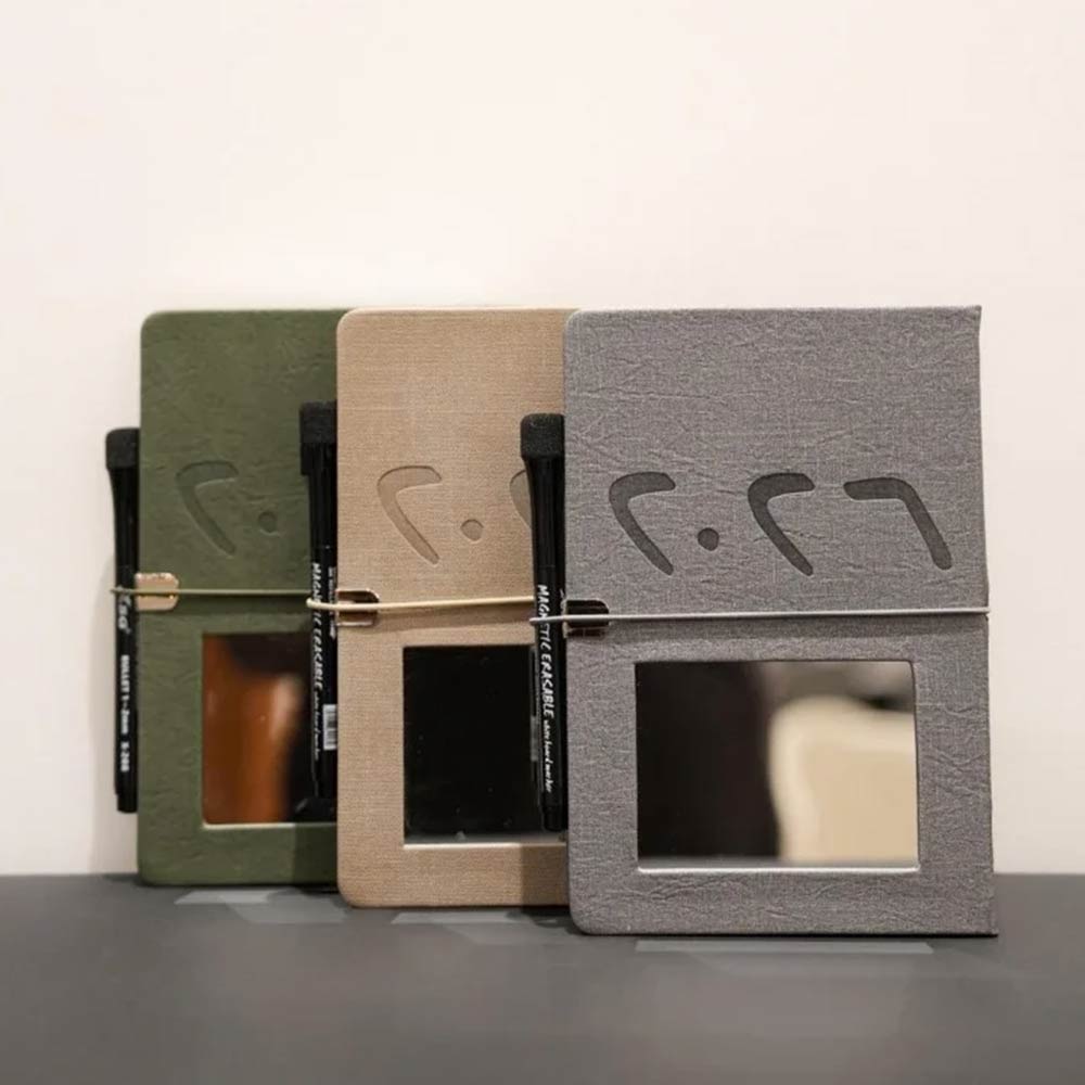 Planner Notebook: A complete A5 planner, featuring monthly and weekly organization, space for notes, motivational stickers, a built-in pocket, and a mirror on the cover.
