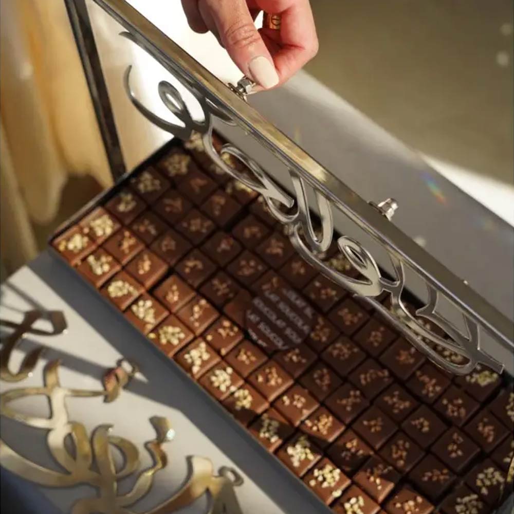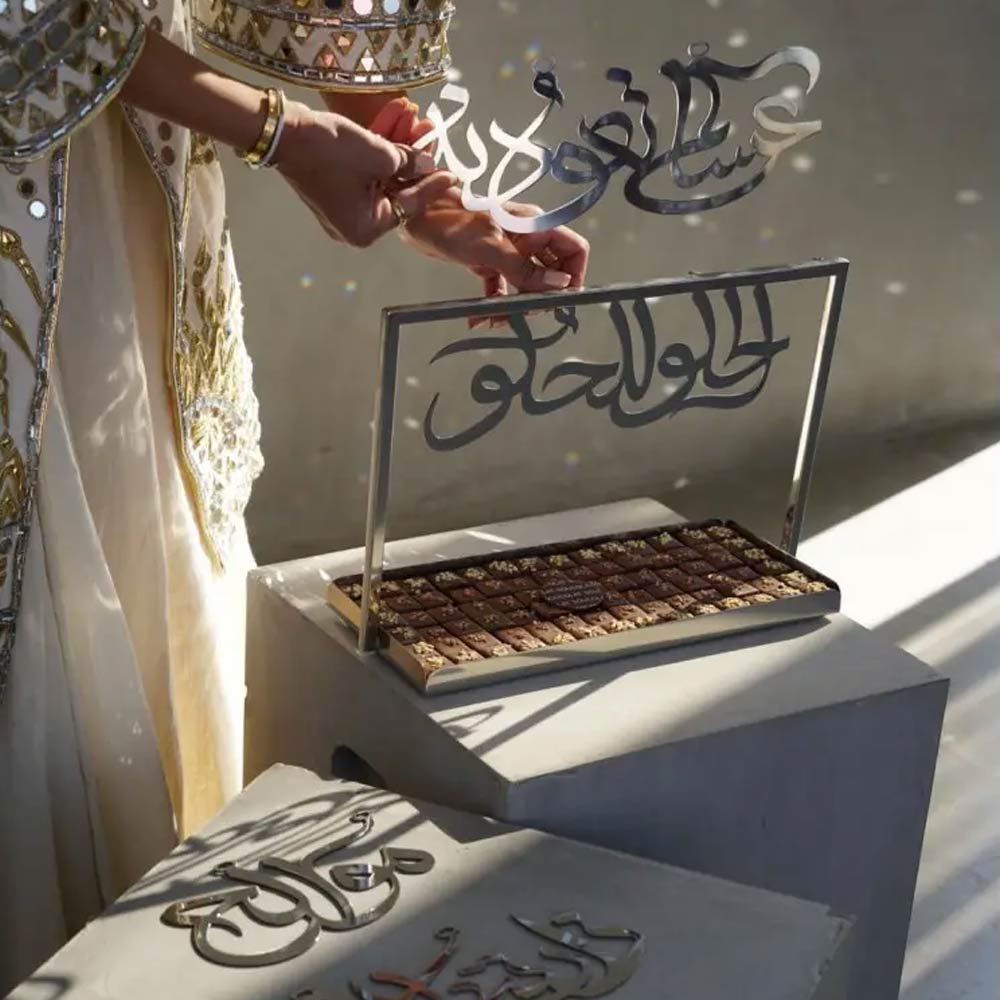 Stop using basic platters and serve with style using our elegant silver steel tray, featuring five interchangeable phrases to match the mood of any gathering.